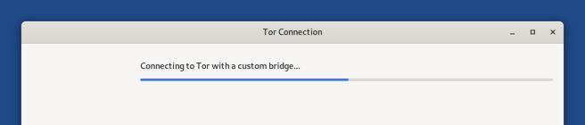 Lors de l'utilisation d'un pont Tor obfs4 personnalisé, la barre de progression de Connexion à Tor reste parfois bloquée environ à la moitié et devient extrêmement lente.