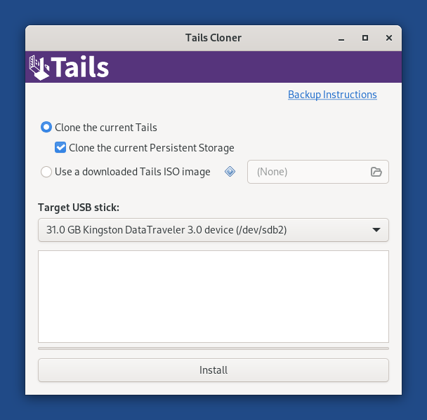 Creating a backup Tails USB stick using Tails Cloner
