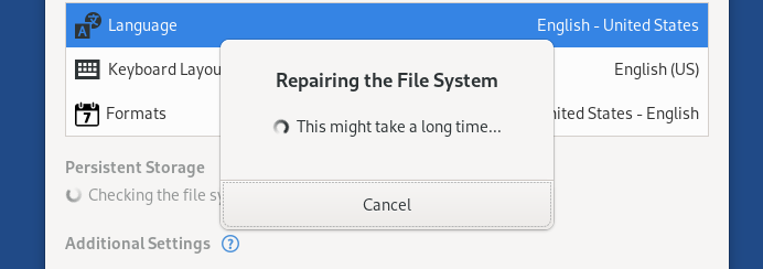 That is why, if you cannot restore from a recent backup, we recommend that you create a partition image of your Persistent Storage before attempting to repair the file system of your Persistent Storage from the Welcome Screen.